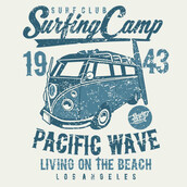 Surfing Camp Tshirt Design Template based on vector files , such as AI and CDR also with PSD separated Layers file, the design has 2 color print, it can be used for digital printing and screen printing.