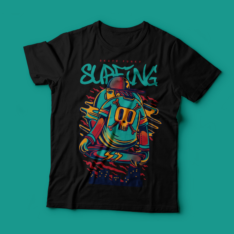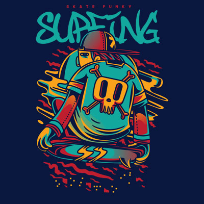Surfing its a Character Design that was made in adobe illustrator. Based on vector file , easy to resize and edit. File features AI, EPS, and PNG all in zip, CMYK color mode and 4 color. Can be used for digital printing and screen printing.