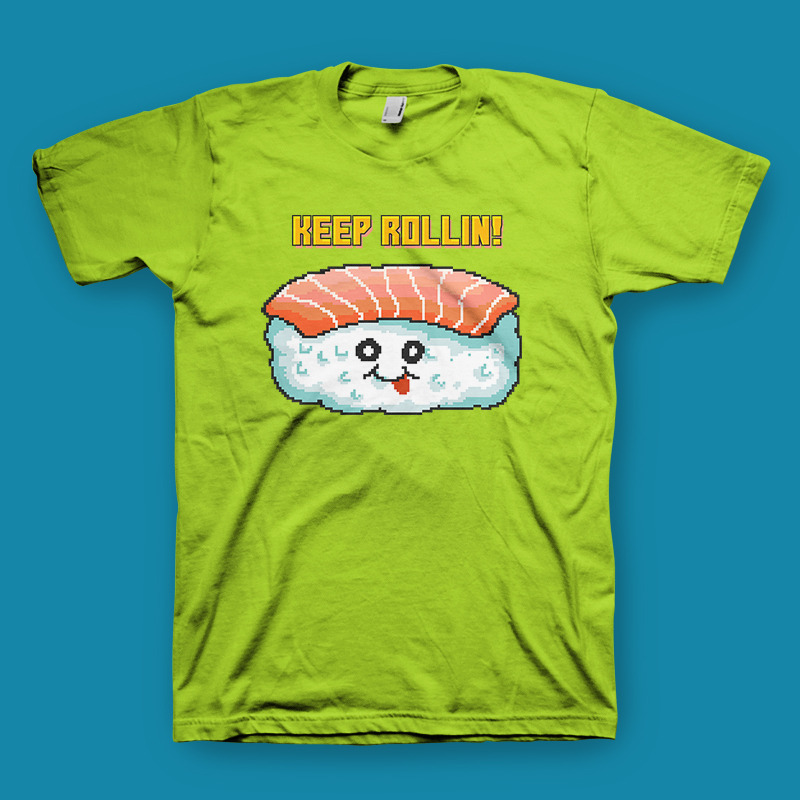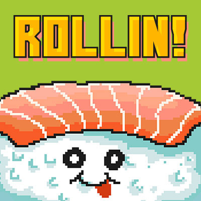 Sushi Kawaii Pixel Art Character Food Puns. Inspired from the retro video game pixel art mixed with funny quotes and sushi cartoon illustration. Made with pixel art illustration.