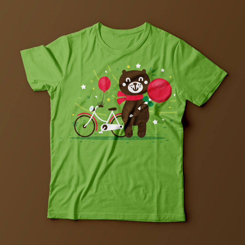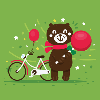 Supersweet bear illustration with its bike, balloon and giant lollypop!