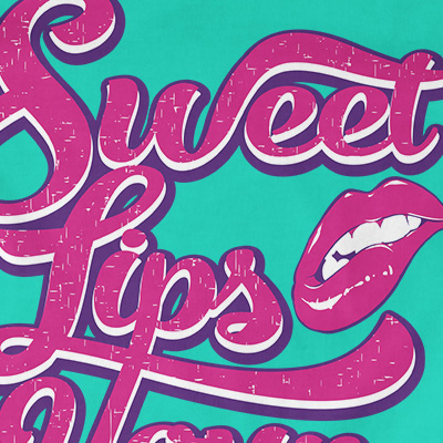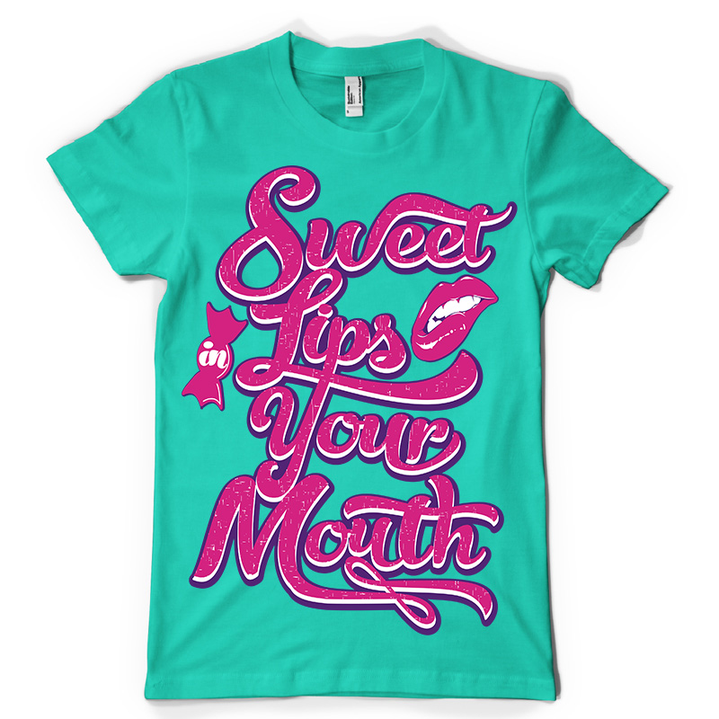 Sweet Lips t-shirt design features a detailed screen print of graphic message now available for Adobe Illustrator, Adobe Photoshop and Corel Draw and can be used for digital printing and screenprinting .