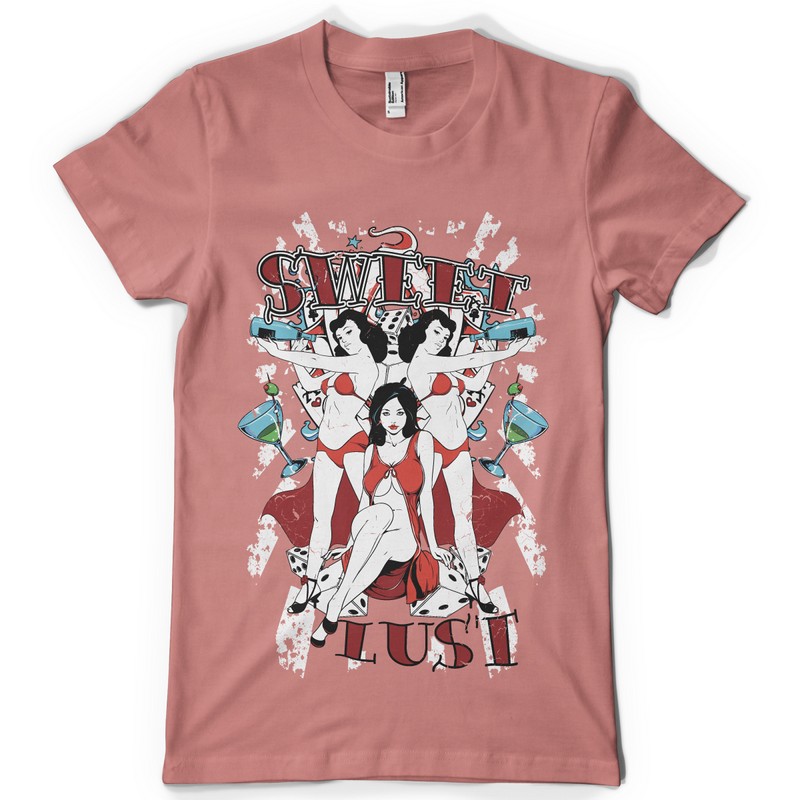 Sweet lust digital design template in vector format, featuring detailed sexy girls now available for Adobe Illustrator, Adobe Photoshop and Corel Draw and can be used for digital printing and screenprinting .