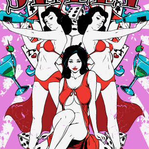 Girls trio with drinks on a gamblers background