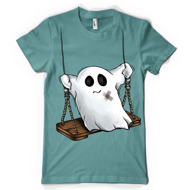 Swing ghost is an illustration made in Adobe Photoshop,featuring a cute scared ghost in a swing.It can be used on digital printing.screen printing and T-shirt design and it is available in PSD and PNG format file.