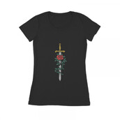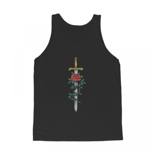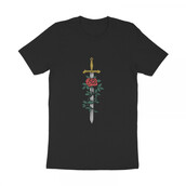 Sword and Rose is a vintage illustration that is suitable for t-shirts, jackets, or merchandise with the theme of sword, knight, shield, warrior, ancient, battle, blade, knife, samurai, rose, flower, blossom, nature, bloom, retro.