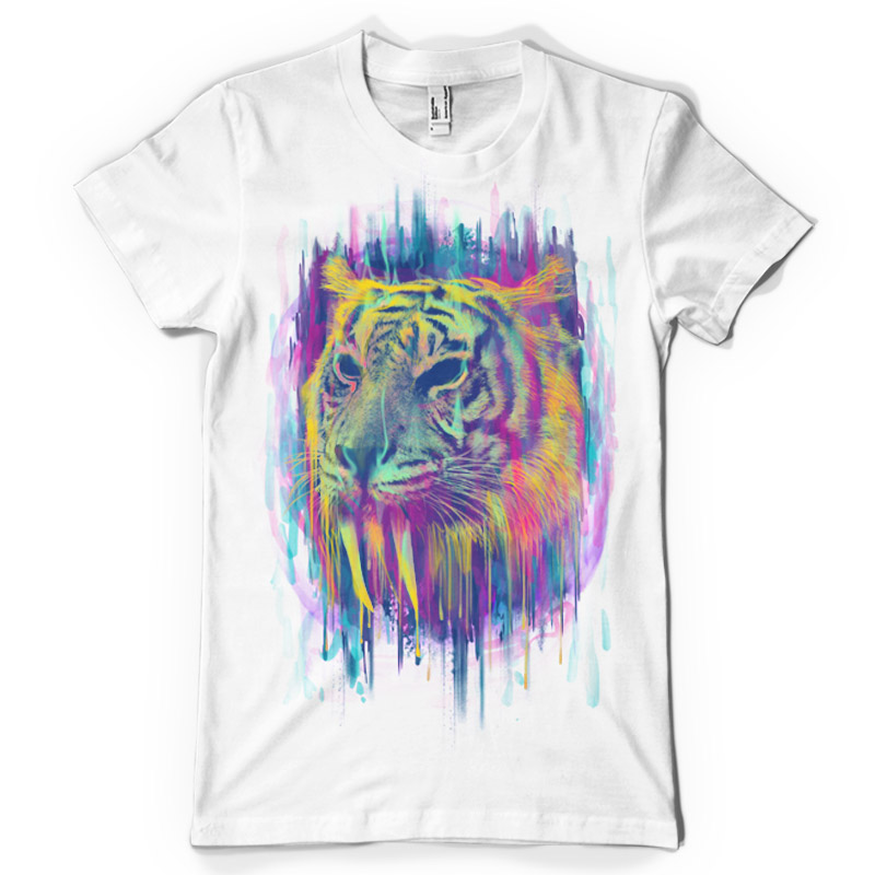 "Synthetic Tiger" is a unique illustration of a painted tiger with cool colors of surreal art. This design is very unique and is great on all materials when printed. File contains a PSD file with 17 x 24 in size with 300 in resolution/dpi.