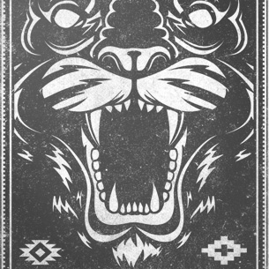 Tableau of an angry tiger with aztec details