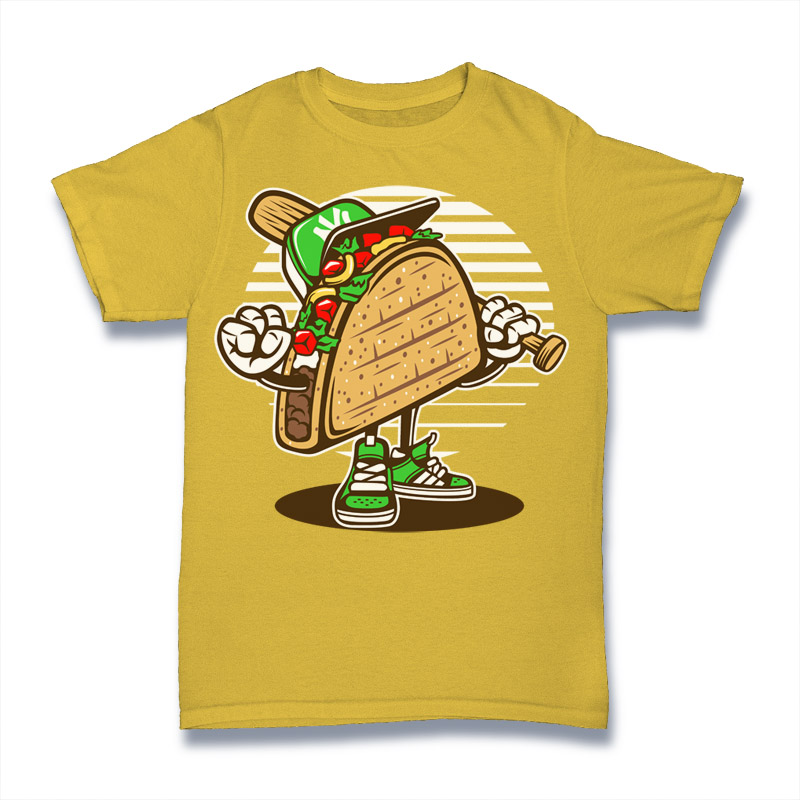 Taco Concept Template style T-shirt design template , The files are AI, CDR, SVG, EPS, PNG and PSD separated Layers. Can be used for digital printing and screen printing.