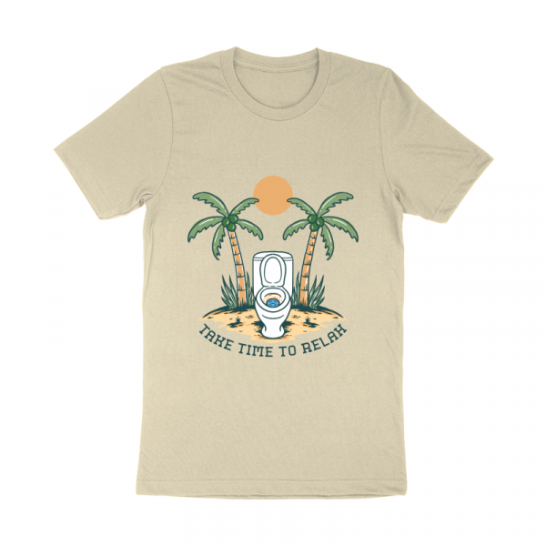 Take Time to Relax is a vintage illustration that is suitable for t-shirts, jackets, or merchandise with the theme of summer, travel, vacation, holiday, beach, tropical, sea, nature, ocean, sand, sun, paradise, toilet, bathroom, camping.