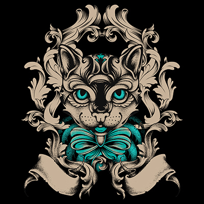 Tatto Cat is vector art and editable, colors and size easy editable for any shirt colors.