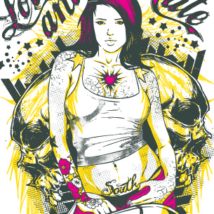 Tattoo girl graphic design template in vector format, featuring detailed beautiful girl now available for Adobe Illustrator, Adobe Photoshop and Corel Draw and can be used for digital printing and screenprinting .