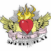 Digital t-shirt desing featuring detailed burning heart with wings where you can add your text. Tattoo love template will be available in vector format for Adobe Illustrator, Adobe Photoshop and Corel Draw and can be used for digital printing and screenprinting .