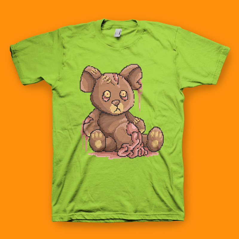 Teddy Zombie. A teddy bear decayed and turn into zombie. Made with pixel art illustration style.
