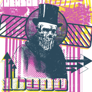 Ten thousands graphic design template in vector format, featuring detailed gentleman skull representing death now available for Adobe Illustrator, Adobe Photoshop and Corel Draw and can be used for digital printing and screenprinting .