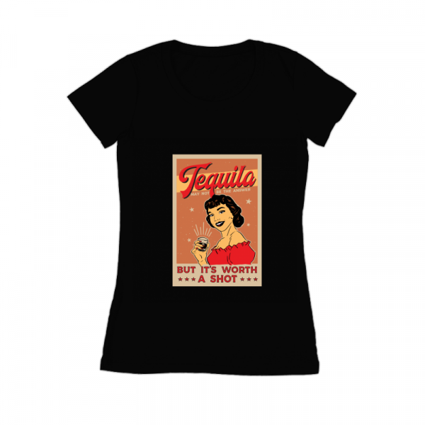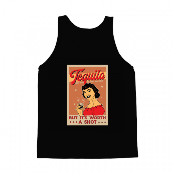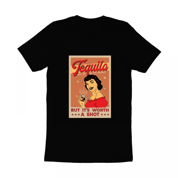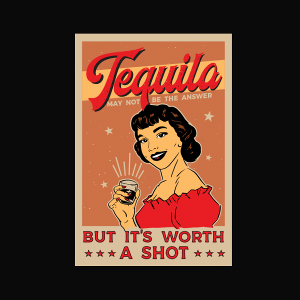 This design “tequila not the answer” is made in Adobe Ilustrator is ready for print.