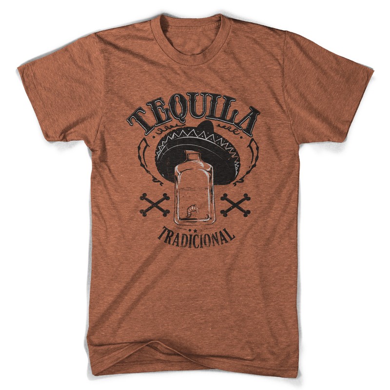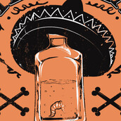 Tequila worm graphic design template in vector format, featuring detailed bottle of tequila with a worm inside now available for Adobe Illustrator, Adobe Photoshop and Corel Draw and can be used for digital printing and screenprinting .