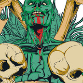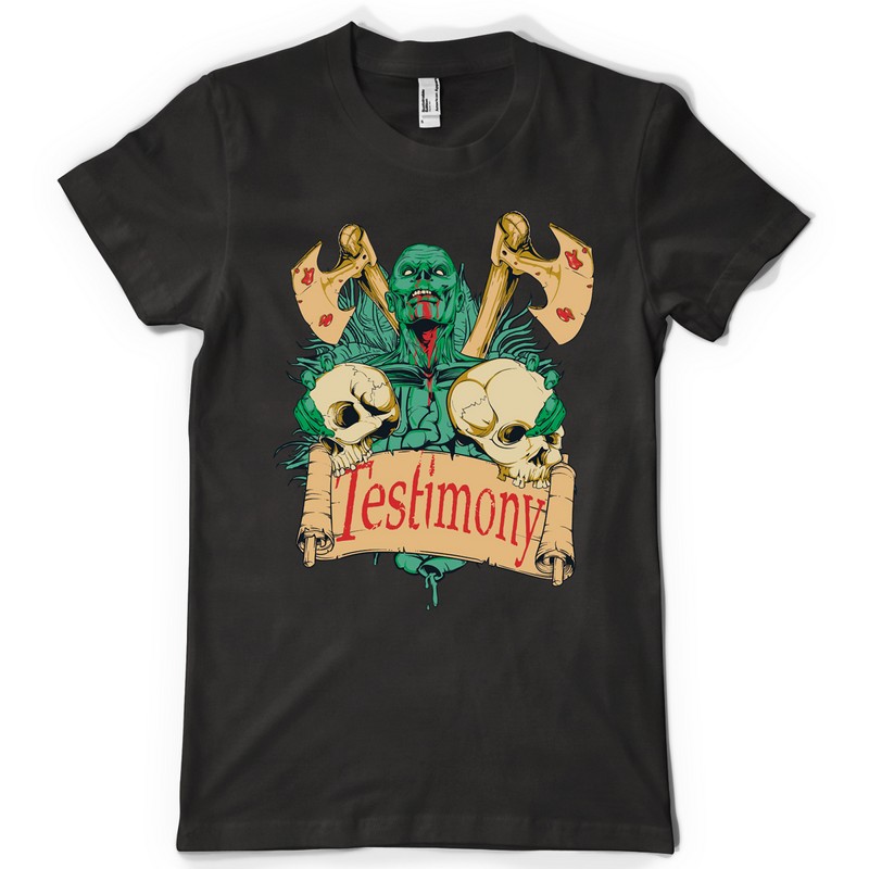Testimony printed t-shirt features a detailed screen print of zombie holding skulls now available in EPS format and can be used for digital printing and screenprinting . Ready to print or use in anything you want.