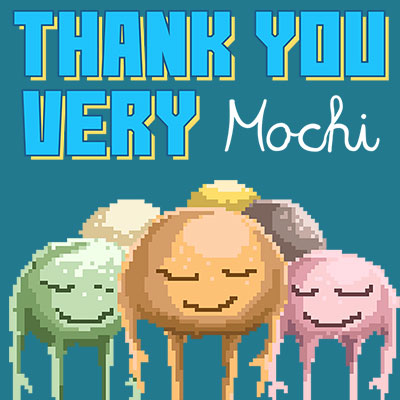 Thank You Very Mochi Food Puns. Inspired from the retro video game pixel art mixed with funny quotes and mochi cartoon illustration. Made with pixel art illustration.