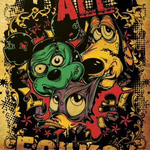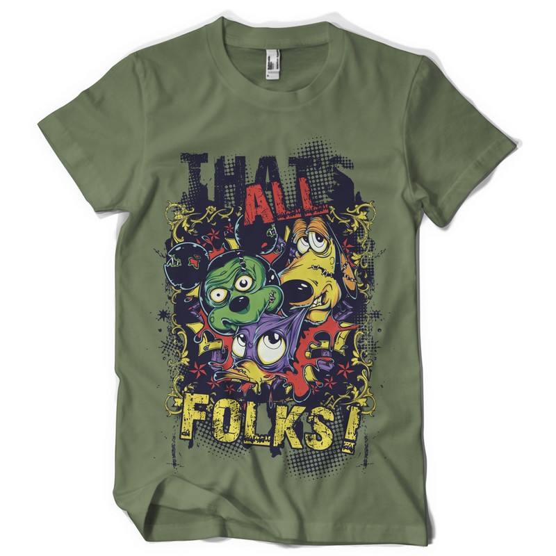 That's all folks design template in vector format, featuring detailed zombie cartoon animals now available for Adobe Illustrator, Adobe Photoshop and Corel Draw and can be used for digital printing and screenprinting .