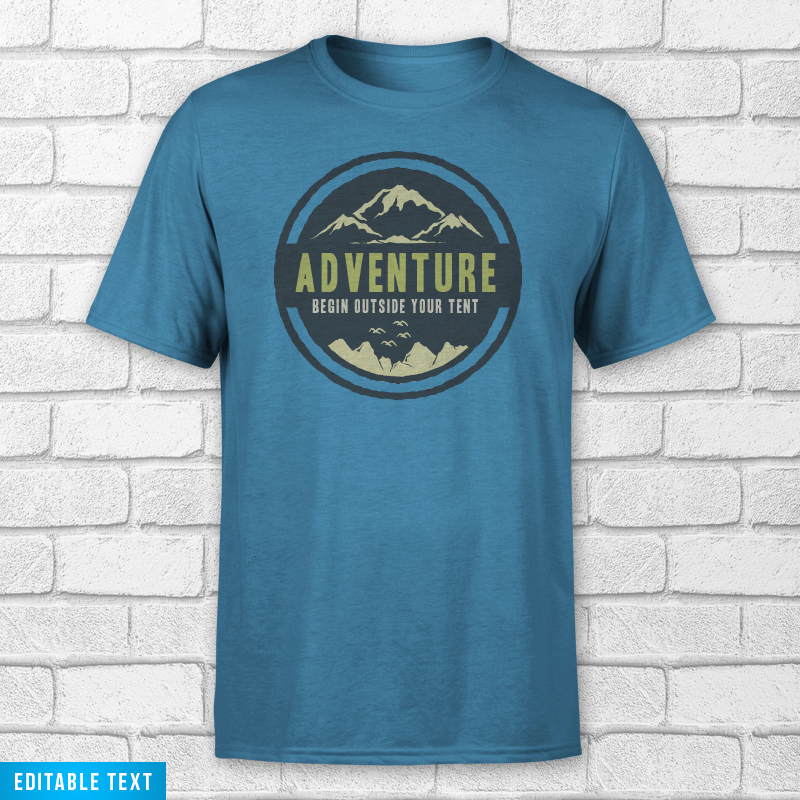 The Adventure Begin is typography based graphic with adventure mountain camp outdoor holiday theme and vintage style illustration. The text is EDITABLE so you can change with your own words.