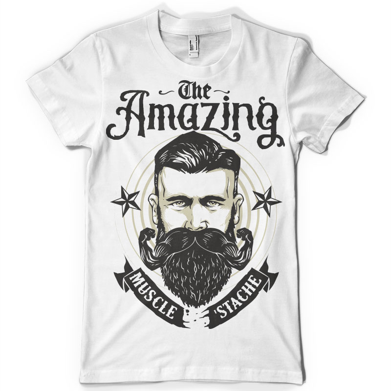 The Amazing Muscle Stache- T-shirt design in vector format.The artwork is featuring a bearded man with mustache muscle arms witch is perfect for Movember month .This is an Adobe Illustrator file, ready for print. Files included are Eps. The template can be used for digital printing and screen-printing.The file is well organised with every element on it's own layer.