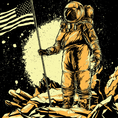 The american astronaut printed t-shirt features a detailed screen print of astronaut with american flag in our hand now available for Adobe Illustrator.Files are available in eps (the CS version).