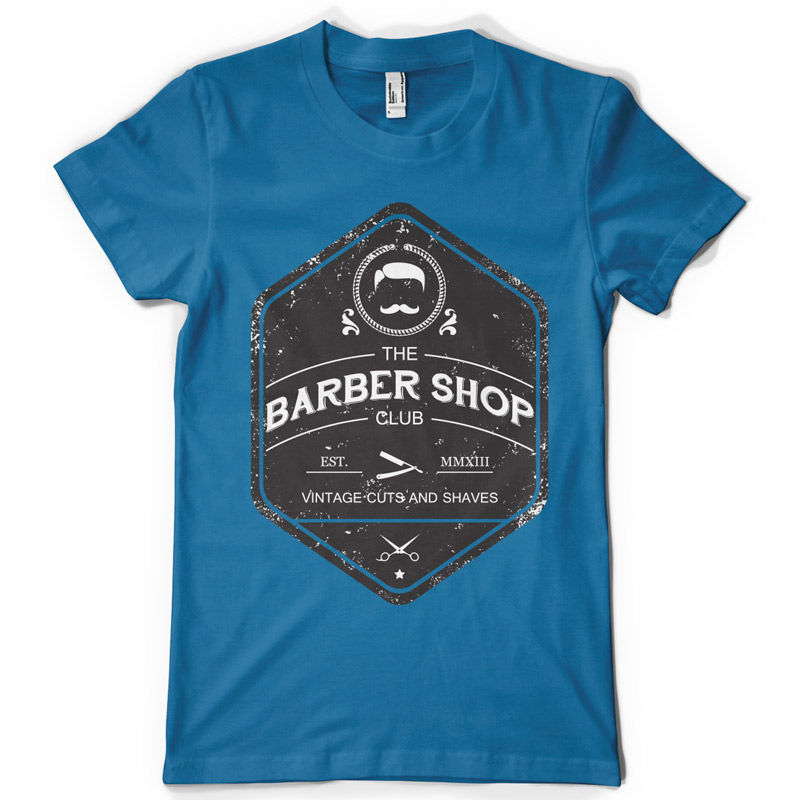 The Barber Shop Club 2 T-shirt design template in vector format, inspired by barbershop culture is now available for Adobe Illustrator and can be used for digital printing and screenprinting .
