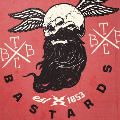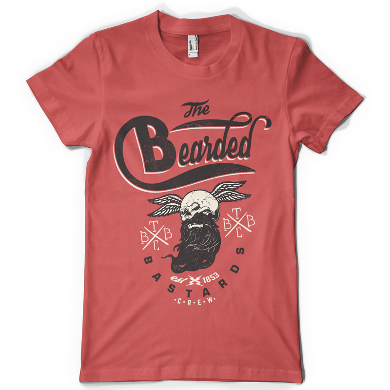 The Bearded Bastards T-shirt design featuring typography style print with skull and beard. The files available are suitable for Adobe Illustrator, Adobe Photoshop and Corel Draw and can be used for digital printing and screenprinting.