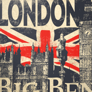 London buildings on a flag background
