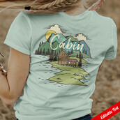 Vector illustration of cabin on the beautiful lake nature. Ready to print on t-shirt.