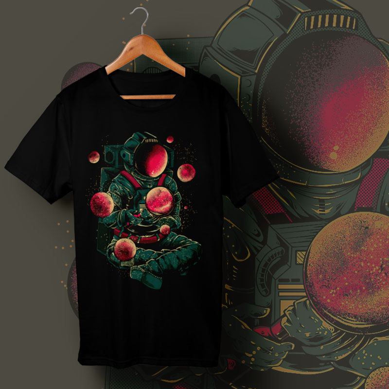 The digital design features a creator of the solar system who uses astronaut clothing. The Creator template is available in bitmap format and can be used for digital printing and screenprinting. This file will be available for Adobe Photoshop CS 6