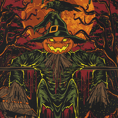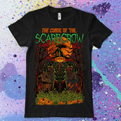The Curse of the Scarecrow t-shirt design features a pumpkin detailed screen print now available for Adobe Illustrator, Adobe Photoshop and Corel Draw and can be used for digital printing and screenprinting