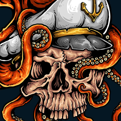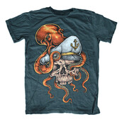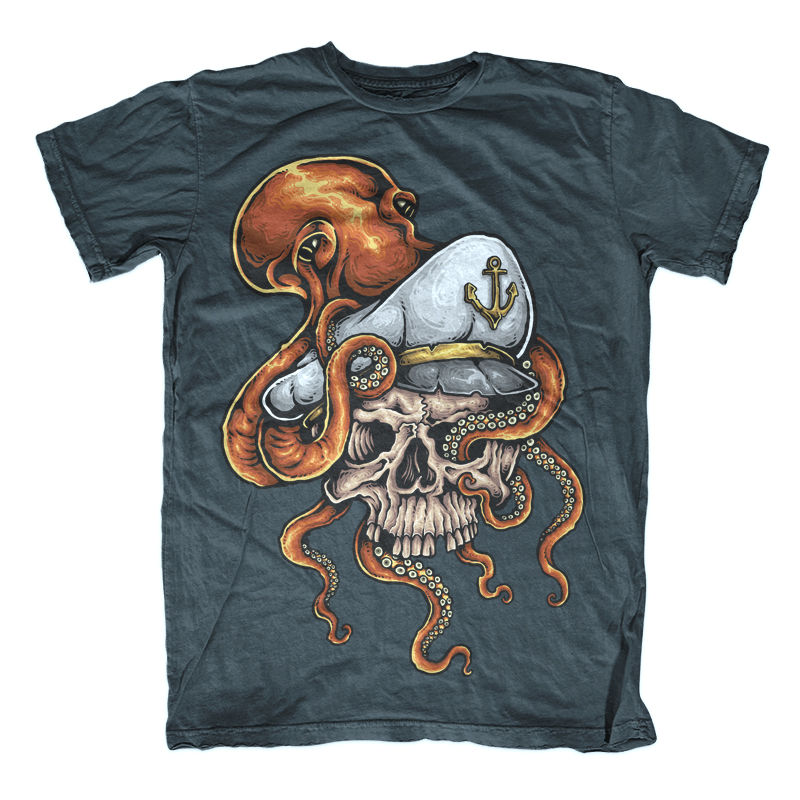 Vector illustration of sailorman skull holding by octopus tentacle. Ready to print on t-shirt.