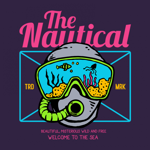 Vector illustration of a diver with nature ocean background nautical. Ready to print on t-shirt.