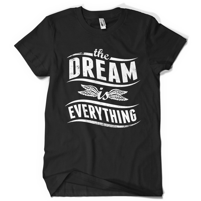 The dream is everything graphic design template in vector format, featuring detailed t-shirt design for dreamers now available for Adobe Illustrator, Adobe Photoshop and Corel Draw and can be used for digital printing and screenprinting .