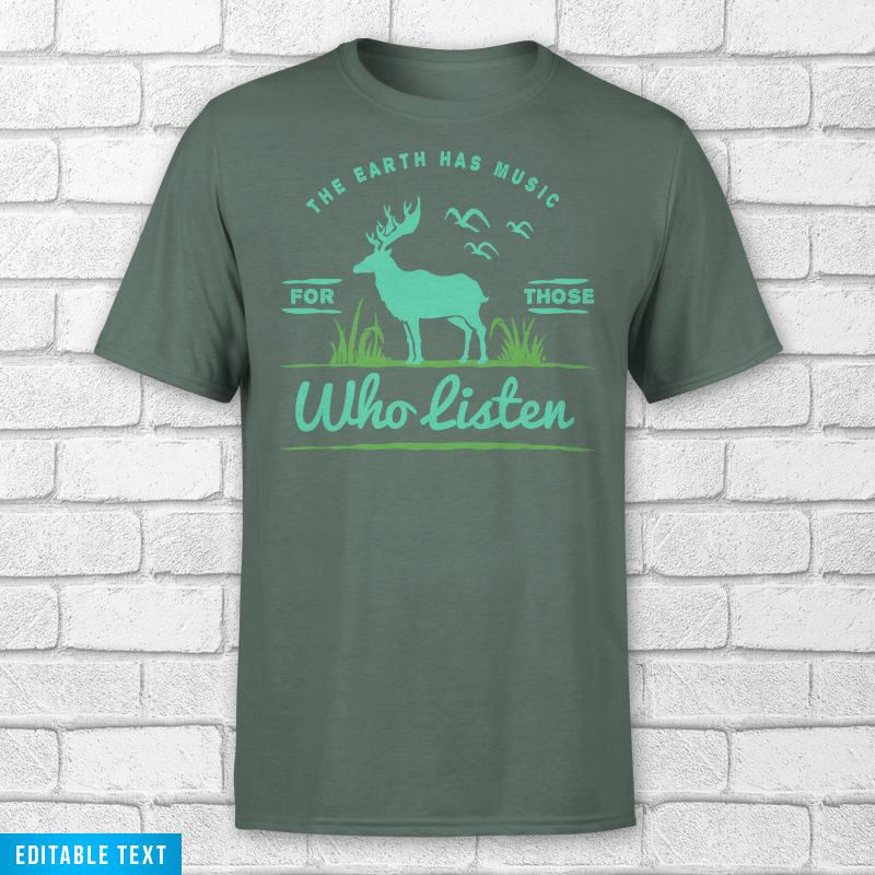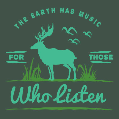 The Earth Has Music For Those Who Listen is typography based graphic with adventure mountain outdoor holiday theme and vintage style illustration. The text is EDITABLE so you can change with your own words.