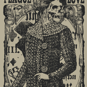 The evil plague graphic design template in vector format, featuring detailed skull woman now available for Adobe Illustrator, Adobe Photoshop and Corel Draw and can be used for digital printing and screenprinting .