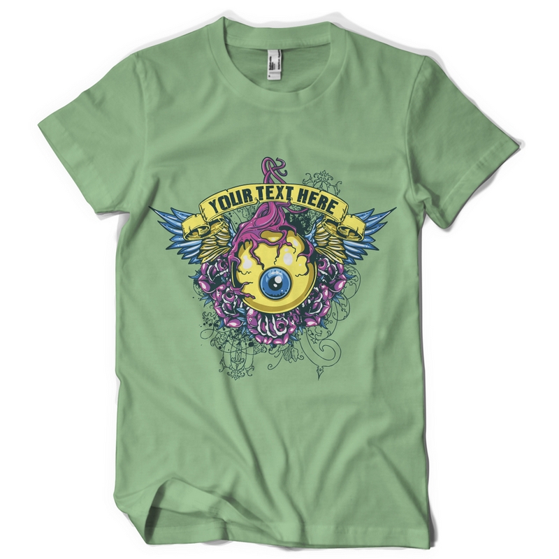 Awesome digital artwork featuring detailed creepy eye with wings. The eye t-shirt template is available in vector format and can be used for digital printing and screenprinting. The file will be available for Adobe Illustrator, Adobe Photoshop and Corel Draw.