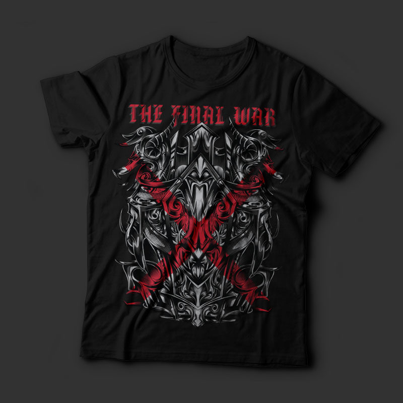 The Final War with Urban an ornament dark design. Great vector design that looks serious and gentle. Based on vector file, easy to resize and edit. File features AI, EPS, and PNG all in zip, CMYK color mode and 6 colors print.