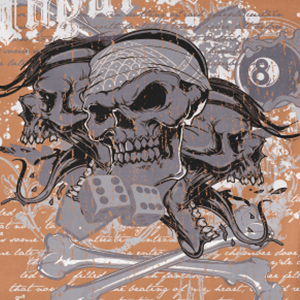 The gamblers printed t-shirt features a detailed screen print of badass skulls is now available in EPS format file and can be used for digital printing and screenprinting . Ready to print or use in anything you want.