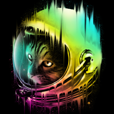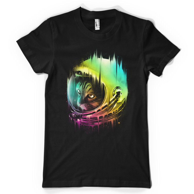 "The Intergalactic Wanderer" is a unique illustration of a Cat wearing an astronaut helmet gear that is exploring the intergalactic universe paired with colorful neon colors that makes this design pop. File contains a PSD file with 17x24 in size.