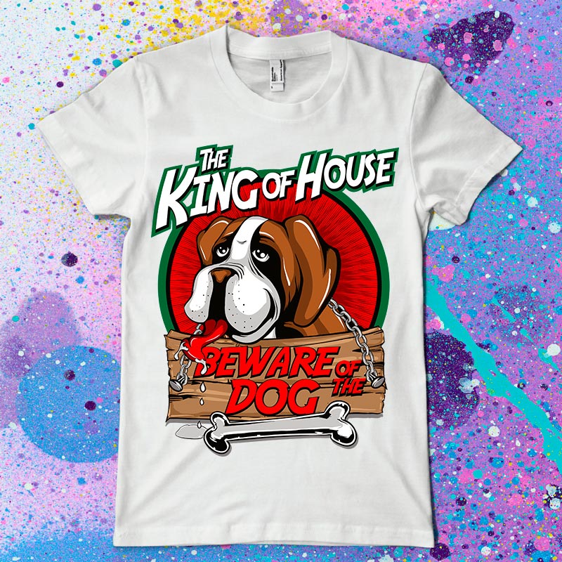 The king of house t-shirt design features a big dog design detailed screen print now available for Adobe Illustrator, Adobe Photoshop and can be used for digital printing and screenprinting