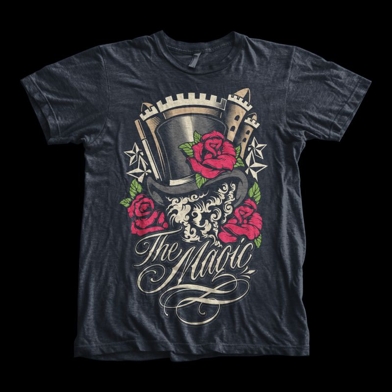 "The Magic" character, cartoon style t-shirt design. This design use 5 colors on dark blue t-shirt. It's high quality vector format, easy for editing process. Available for Adobe Illustrator, PDF, PSD and can be used for digital printing and screen printing.