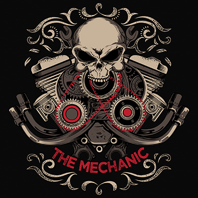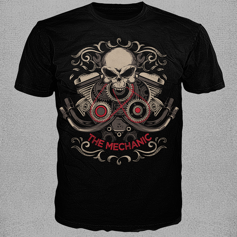 The Mechanic Designed in Psd file easy editable font (attached original font link 100% free) vector art so colors and size very easy editable for any shirt colors.