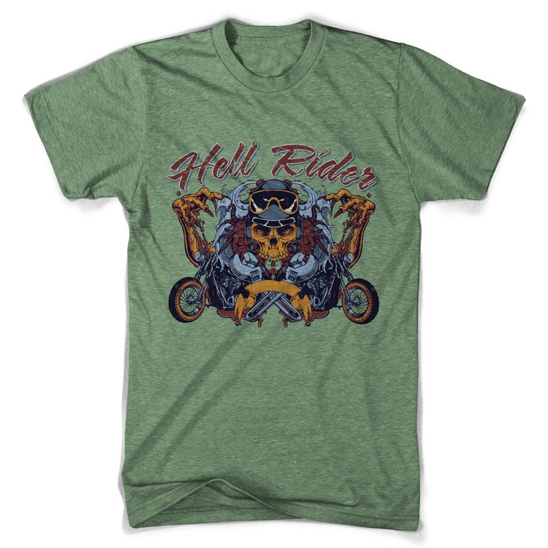 The mechanic t-shirt design template in vector format, featuring detailed badass skull biker now available for Adobe Illustrator, Adobe Photoshop and Corel Draw and can be used for digital printing and screenprinting .