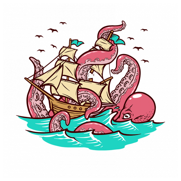 The octopus attacks the sailing ship