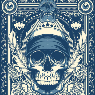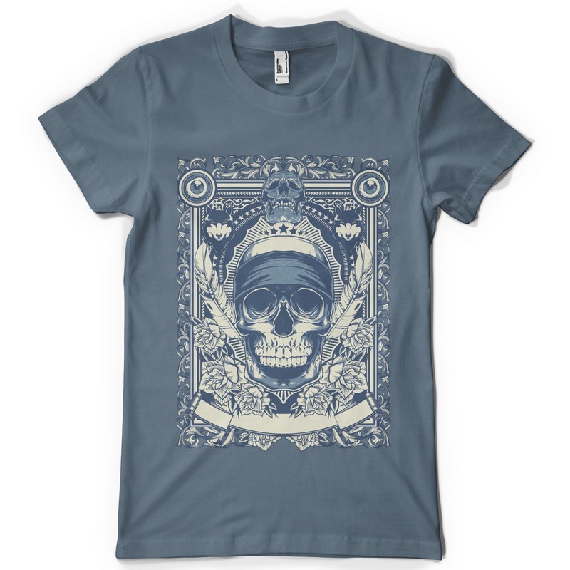 Digital design featuring detailed headbanded skull. The pack template is available in vector format and can be used for digital printing and screenprinting. The file will be available for Adobe Illustrator, Adobe Photoshop and Corel Draw.