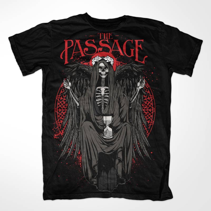 The Passage printed t-shirt features a detailed screen print of beauty skull queen now available for Adobe Illustrator, Adobe Photoshop and Corel Draw and can be used for digital printing and screenprinting .