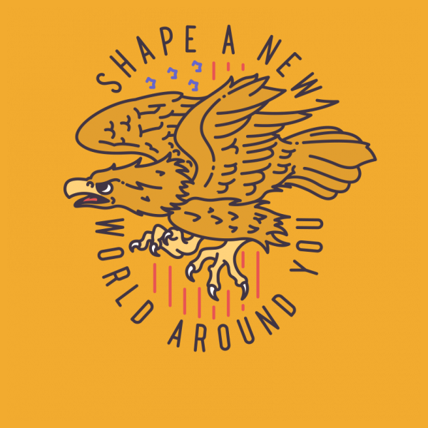 "The Patriot Eagle" T-shirt design featuring a cartoon style eagle. The files available are suitable for Adobe Illustrator and Adobe Photoshop and can be used for digital printing and screen-printing.