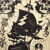 The pirate rule skulls, lighthouse and thunder bolts details